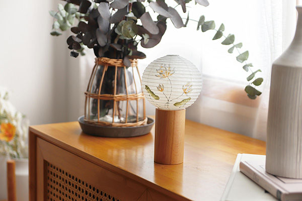 盆提灯は迎え火のように、あの世から帰ってくるご先祖様や故人の霊に「家はこっちですよ」と知らせる役割があります。お墓の前で提灯を灯して、そこから家まで提灯を持って道案内をする地域もあります。最近ではコンパクトな仏壇の需要に合わせて、コンパクトな盆提灯が大変人気です。写真に映っている「盆提灯tocco(トッコ)」は、福岡県八女市の伝統工芸「八女提灯」の技術で作られたモダンな盆提灯です。コードレスで仏壇のまわりがすっきりするだけでなく、ブナのやさしい色味が北欧インテリアを思わせるおしゃれなデザインもポイントです。インテリアランプとして普段使いも出来て1年通して飾っていただけます。