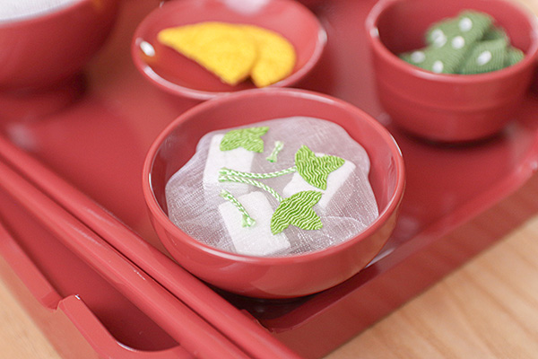 特にお吸い物の再現度がとっても素晴らしく、上にちょこんと乗った三つ葉はもちろん、中に透けて見える豆腐も再現されていて、これは間違いなくお吸い物だと分かるような仕様になっています。