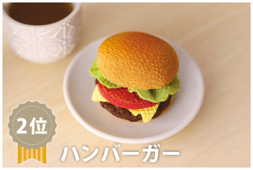 ふんわり敷かれたレタスに新鮮なトマト、とろ~りとろけるチーズにジューシーなパティが挟まれたハンバーガーはミニチュアサイズとは思えないほどの再現度。見てると思わずお腹が空いてしまいそうなリアルな可愛さが大変人気で、堂々の第2位となりました!