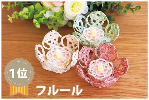 鮮やかな色の水引で組まれた花の形が軽やかで、仏壇の中に置いても圧迫感がありません。電池式でコードレスのため、仏壇まわりの見え方もすっきりとさせることができます。ちなみにホワイト、グリーン、ピンクの3色で1番人気なのはホワイトとなっており、手に取りやすい価格なので贈り物にもおすすめです。
