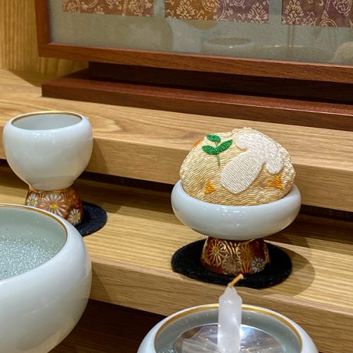 しかし現在お米を取り巻く様々な要因から、毎日ご飯を炊かないご家庭もきっと多いはずです。そういったなかでも仏飯をお供えしたい!というお声に応えるちりめん飾り「ごはんメモリア」をご紹介します。