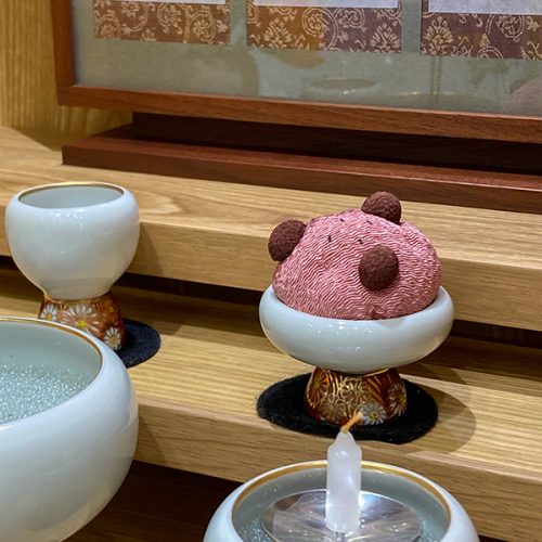 ちりめん素材なので、これから暑くなる時期は傷む心配もなく安心して毎日お供えいただけます。もちろん、ご自宅でご飯を炊かれた際は、ぜひ本物のご飯をお供えくださいね。