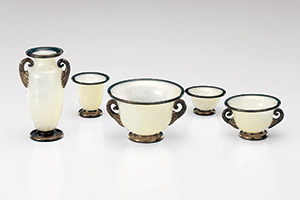 乳白色のガラスに金銀、黒色のガラスに金箔をちりばめ「ジェンマⅡ」はクラシックな印象の中に華やかさがあります。