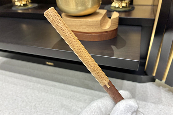 ◆リン棒「ひこ星」 ライト色のナラ材とダーク色のウォールナット材によるバイカラーがおしゃれです。