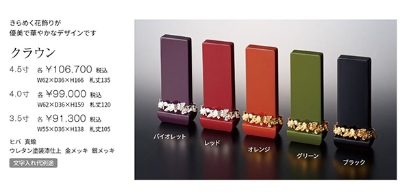 ギャラリーメモリア筑紫野店では、今回ご紹介した「クラウン」以外にもステキな現代位牌を多数とり扱っております。お位牌検討中の方がいらっしゃいましたら、ぜひ一度ギャラリーメモリアへ足をお運びくださいませ。皆様のご来店をスタッフ一同、心よりお待ちしております。