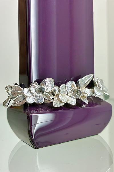 「クラウン」の名前通り、花冠のような優美な花飾りが魅力的です。花飾りは鋳物の産地である富山県高岡市で製作。花弁の立体感や葉の葉脈などといった細かいところまで表現されております。