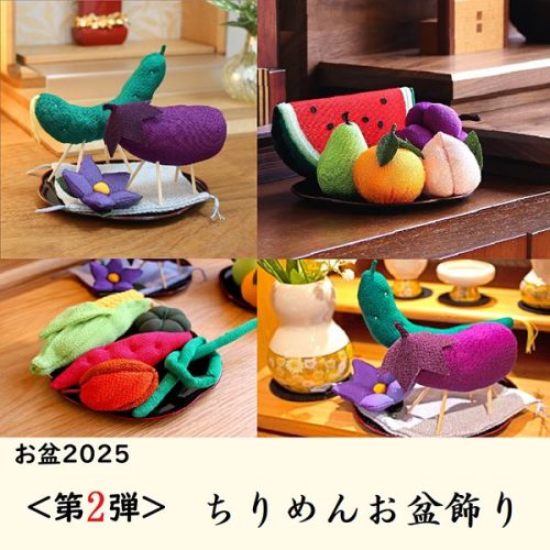 こちらのちりめん「精霊馬」「果物盛り」「野菜盛り」は、ギャラリーメモリア仙台広瀬通店で実際にご覧いただけます。お近くのスタッフまでお気軽にお問い合わせくださいませ。「見てみるだけ」「行ってみるだけ」大歓迎です!スタッフ一同、心よりお待ちしております。