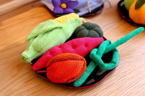 とれたてフレッシュな野菜盛りをちりめん細工で表現しました!