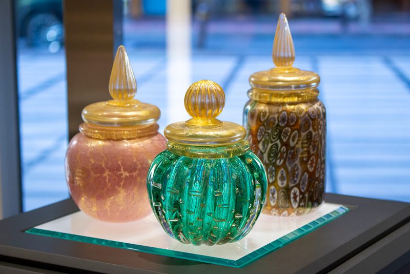 骨壺は他にも、ヴェネツィアンガラス製のものもございます。イタリアの熟練のガラス職人が制作しています。