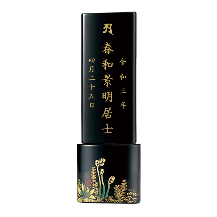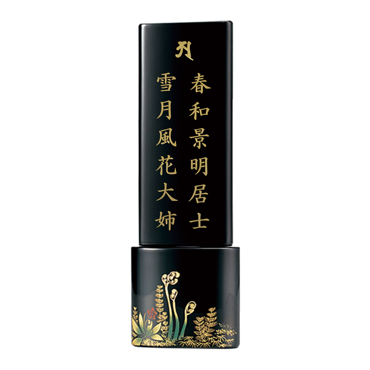 さわらび 4.0寸 ▼ 価格・仕様を見る 画像をクリックすると切り替わります 価格・仕様 商品名さわらび 4.0寸 価格(税込)¥231,000 サイズ (mm) W(幅) :60 D(奥行き) :34 H(高さ) :173 材質漆 ホオ ヒバ 仕上輪島塗布着せ本堅地呂色仕上 沈金 製造国日本製 おしゃれでモダンな輪島塗位牌。かわいいワラビに高級感が漂います。夫婦位牌にできるのでミニ仏壇や小さい手元供養にも最適です。名入れを別途承ります。 文字入れもセットでご注文ください 文字入れの詳細はこちら ページの先頭へ 関連商品 アデル グリーン 仏具・神具 ¥176,000 朧 おぼろ 茶金 3.0寸 過去帳・過去帳台 ¥28,050 ペンダント位牌 カリン 位牌 ¥24,200