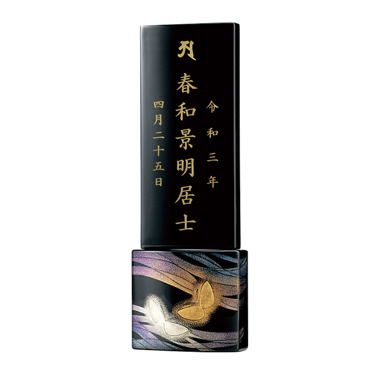 まどろみ 4.0寸 ▼ 価格・仕様を見る 画像をクリックすると切り替わります 価格・仕様 商品名まどろみ 4.0寸 価格(税込)¥242,000 サイズ (mm) W(幅) :60 D(奥行き) :33 H(高さ) :173 材質漆 ホオ ヒバ 仕上輪島塗布着せ本堅地呂色仕上 沈金 製造国日本製 モダンな輪島塗位牌。生命の輝く一瞬を描いた沈金がおしゃれ。夫婦位牌にできるのでミニ仏壇や小さい手元供養にも最適です。名入れを別途承ります。 文字入れもセットでご注文ください 文字入れの詳細はこちら ページの先頭へ 関連商品 風かご ミニ骨壺・コアボトル ¥25,300 メンヒ 4.5寸 位牌 ¥52,800 フィオーリ フリンジ FFG-001 念珠・その他仏具 ¥5,500
