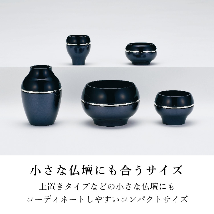 ソワレII・ネイビー ▼ 価格・仕様を見る 画像をクリックすると切り替わります 価格・仕様 商品名ソワレII・ネイビー 価格(税込)¥106,700 材質真鍮(銀メッキ) 備考クリスタルビーズ ローソク立て芯 フェルト オトシ(茶湯器 仏飯器)付 製造国日本製 質感を変えて表現した色の組み合わせがモダンな鋳物仏具。産地・高岡の技術が光る逸品です。 ページの先頭へ 関連商品 メモリアルフラワーmini ルビーIII お盆・盆提灯・お供物・仏花 ¥1,650 漣 4.5寸 さざなみ 位牌 ¥95,700 さわらび 4.5寸 位牌 ¥242,000