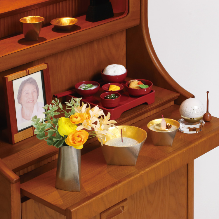ナーヴェ ▼ 価格・仕様を見る 画像をクリックすると切り替わります 価格・仕様 商品名ナーヴェ 価格(税込)¥143,000 材質錫 金箔 備考クリスタルビーズ ローソク立て芯 フェルト オトシ(茶湯器 仏飯器)付 製造国日本製 錫100%の無垢と金箔を華やかに組み合わせました。三角形から円形に変化している形状が特徴です。 ページの先頭へ 関連商品 水面 4.0寸 みなも 位牌 ¥88,000 レビュー 位牌 ¥46,200 白波 過去帳台 過去帳・過去帳台 ¥6,600