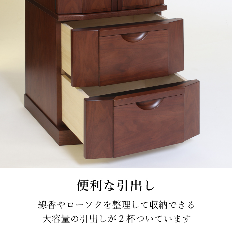 ハバネラ 1100 ▼ 価格・仕様を見る 画像をクリックすると切り替わります 価格・仕様 商品名ハバネラ 1100 価格(税込)¥495,000 サイズ (mm) W(幅) :440 D(奥行き) :360 H(高さ) :1100 重量約 32 kg 材質ウォールナット メープル 仕上ウレタン塗装 仕様・引き出し付き ・須弥壇取り外し可能(上段のみ) ・背板リバーシブル仕様 製造国日本製 おしゃれなモダン仏壇です。現代仏壇のロングセラー・デザイン。日本製ならではの高品質で和室だけでなくリビングやマンションに馴染み、ワンランク上のインテリア空間を演出します。 ページの先頭へ 関連商品 乗鞍 台付き(床置き)仏壇 ¥1,980,000 マロウ ダーク 上置き(コンパクト)仏壇 ¥451,000 マルコII 台付き(床置き)仏壇 ¥990,000