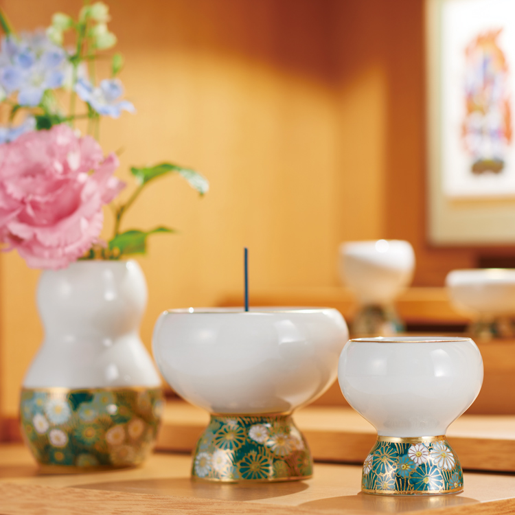 ホビット・グリーン ▼ 価格・仕様を見る 画像をクリックすると切り替わります 価格・仕様 商品名ホビット・グリーン 価格(税込)¥46,200 材質磁器(九谷焼) 備考クリスタルビーズ ローソク立て芯 フェルト付 製造国日本製 日本を代表する色絵陶磁器の九谷焼。伝統的な絵付け「花詰」と九谷五彩を用いてモダンにアレンジしました。 ページの先頭へ 関連商品 花かご ミニ骨壺・コアボトル ¥25,300 クラウン ブラック 4.0寸 位牌 ¥99,000 仏壇灰きれい ビーズ灰タイプ お盆・盆提灯・お供物・仏花香炉灰・お手入・傷防止用品その他 ¥1,760