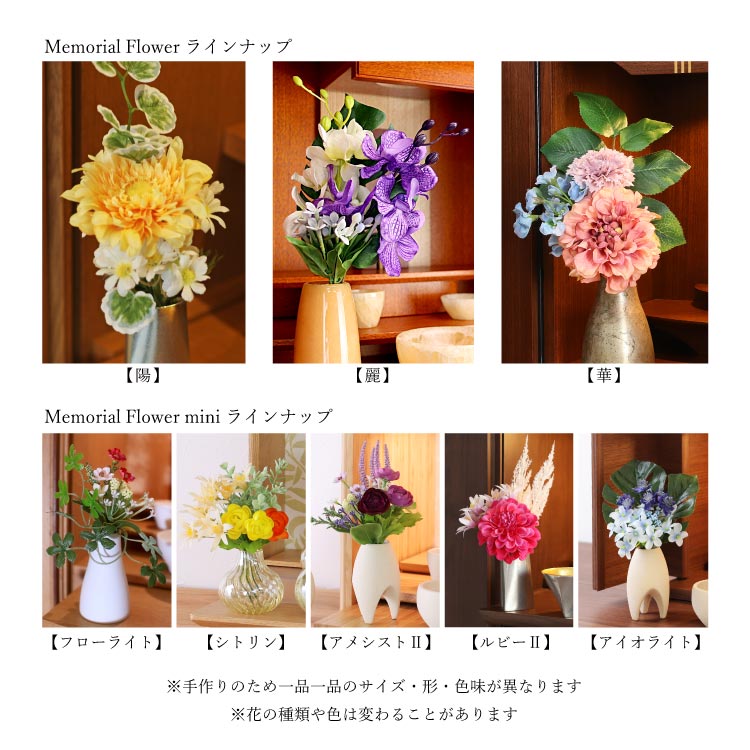 メモリアルフラワーmini アメシストII ▼ 価格・仕様を見る 画像をクリックすると切り替わります 価格・仕様 商品名メモリアルフラワーmini アメシストII 価格(税込)¥1,650 サイズ (mm) W(幅) :130 H(高さ) :185 材質ポリエステル ポリエチレン 製造国日本製 枯れない仏花です。おしゃれな造花なのでインテリアに馴染み、そのまま仏壇にお供えできて手間をかけずに長く飾れます。お盆やお彼岸、法事の贈り物としてもご利用いただけます。 ページの先頭へ 関連商品 オクト・レッド 仏具・神具 ¥67,100 ロトンド 仏具・神具 ¥154,000 ギフト箱(ちりめん飾り 3個用) お盆・盆提灯・お供物・仏花 ¥220