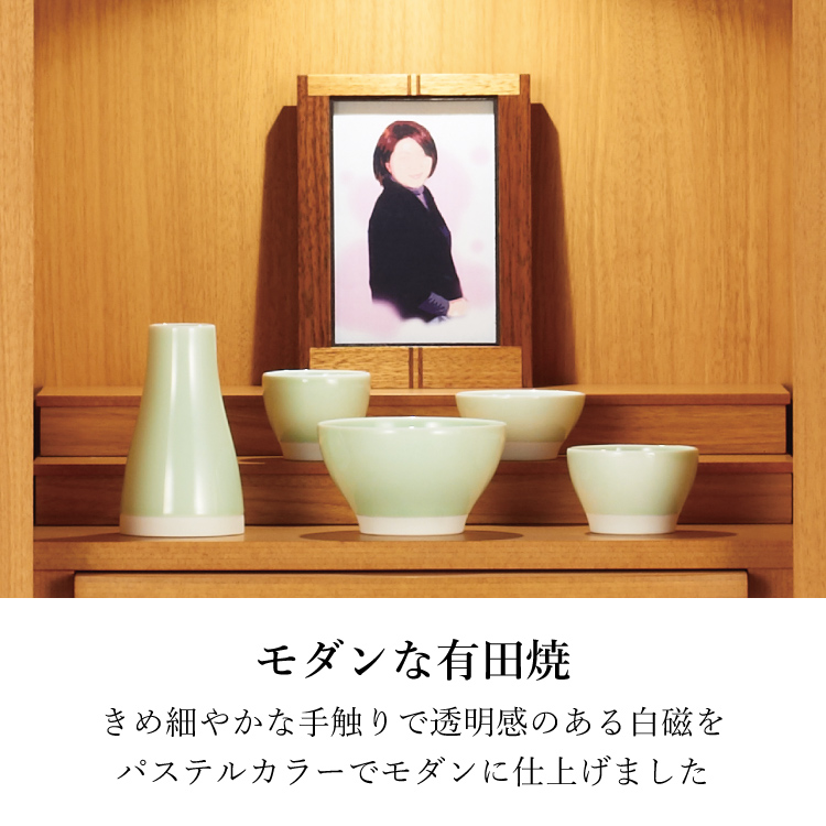 わたゆき・グリーン ▼ 価格・仕様を見る 画像をクリックすると切り替わります 価格・仕様 商品名わたゆき・グリーン 価格(税込)¥31,900 材質磁器(有田焼 ) 備考クリスタルビーズ ローソク立て芯 フェルト付 製造国日本製 海外で評価を受けている有田焼でモダンな仏具を作りました。 ページの先頭へ 関連商品 敬 けい 位牌 ¥429,000 カオリーノ S 仏具・神具 ¥22,000 ヴェネツィアン フォトフレーム VP-003MS 写真立て・フォトフレーム ¥25,300