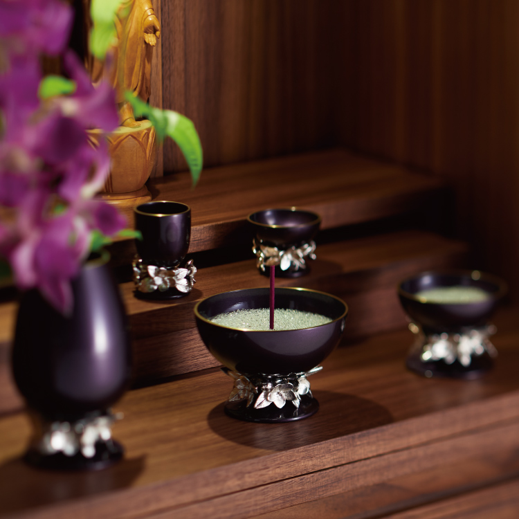 アデル バイオレット ▼ 価格・仕様を見る 画像をクリックすると切り替わります 価格・仕様 商品名アデル バイオレット 価格(税込)¥176,000 材質真鍮(銀メッキ) 備考クリスタルビーズ ローソク立て芯 フェルト オトシ(茶湯器 仏飯器)付 製造国日本製 優雅な花飾りがジュエリーのようにまばゆく輝きます。 ページの先頭へ 関連商品 紫香楽 しがらき 仏具・神具 ¥45,100 ヴェネツィアン フォトフレーム VP-001SS 写真立て・フォトフレーム ¥9,900 アンデス 位牌 ¥62,700