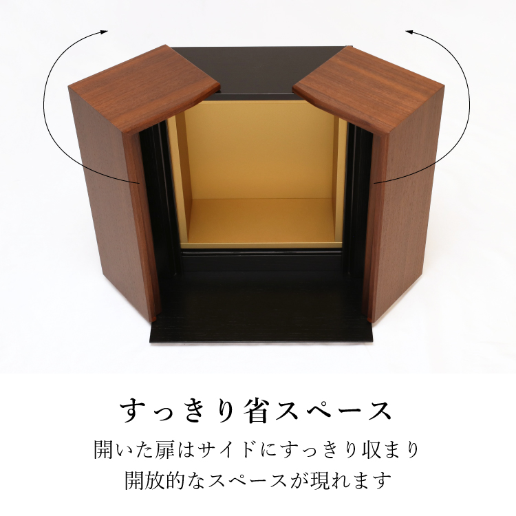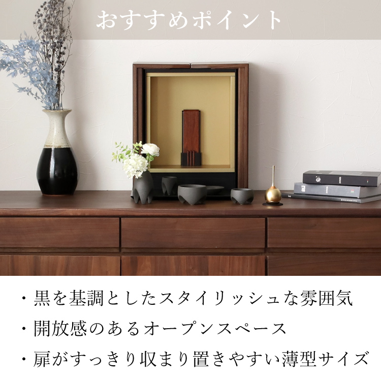 おしゃれなモダン仏壇です。リビングやマンションに置きやすいミニ仏壇。小さいながら日本製ならでは細やかな作りでインテリア性が高く、シンプルな手元供養もおすすめです。