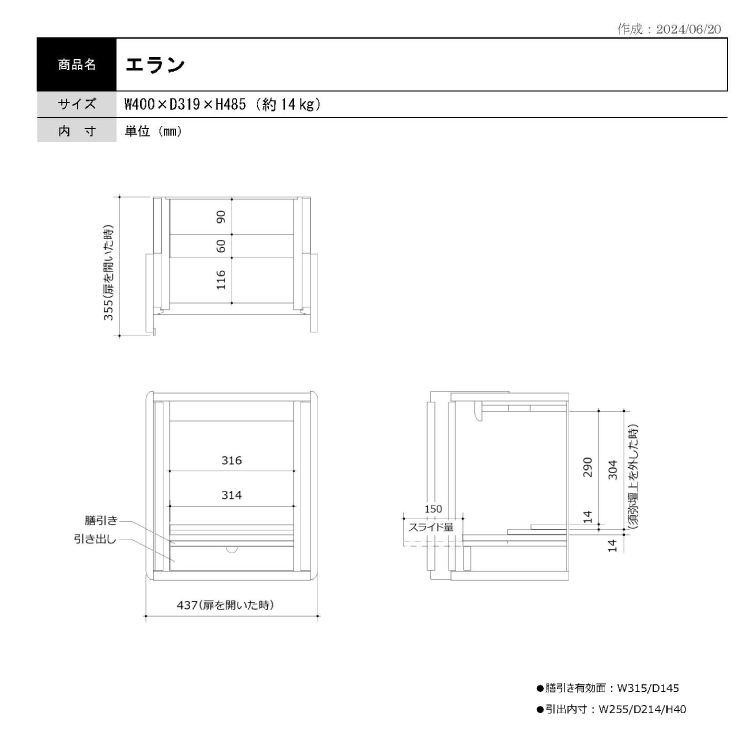 W(幅) :400 D(奥行き) :319 H(高さ) :485