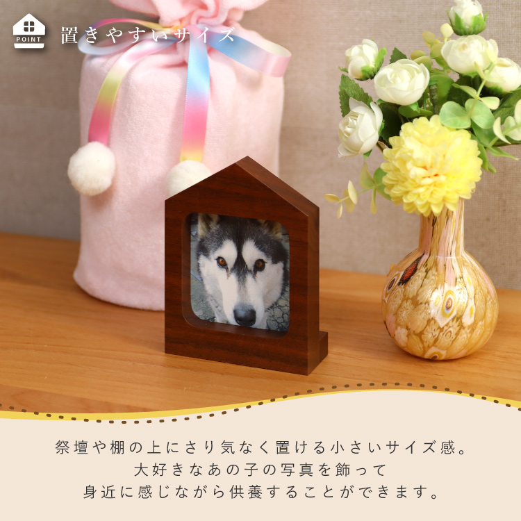 カーザ ダーク ▼ 価格・仕様を見る 画像をクリックすると切り替わります 価格・仕様 商品名カーザ ダーク 価格(税込)¥5,500 サイズ (mm) W(幅) :80 D(奥行き) :27 H(高さ) :103 材質ウォールナット アクリル 仕上ウレタン塗装 製造国日本製 家型のかわいい写真立て。お気に入りの写真を飾って供養すれば想い出が心によみがえります。仏壇や祭壇だけでなくリビングにも置きやすいミニサイズです。 ページの先頭へ 関連商品 香皿【魚】ホワイト ペット供養 ¥3,300 ルナ ステージ ペット供養 ¥40,700 名前彫り ペット供養 ¥3,300