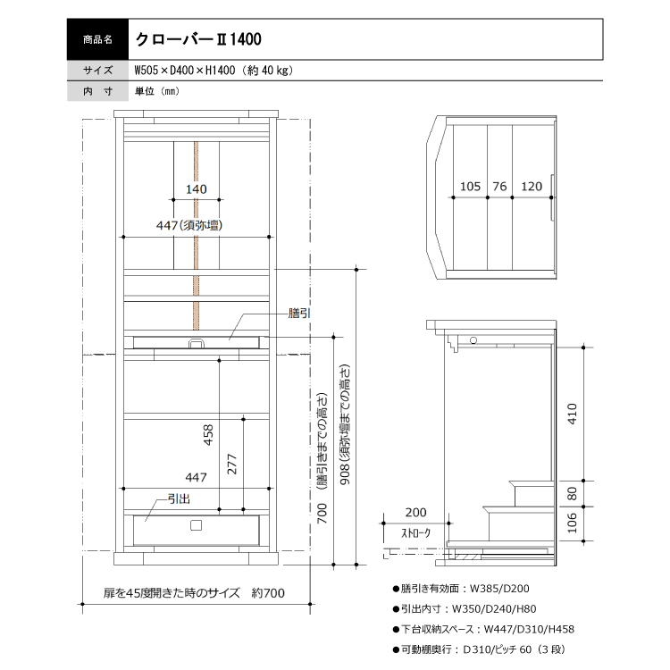W(幅) :505 D(奥行き) :400 H(高さ) :1400
