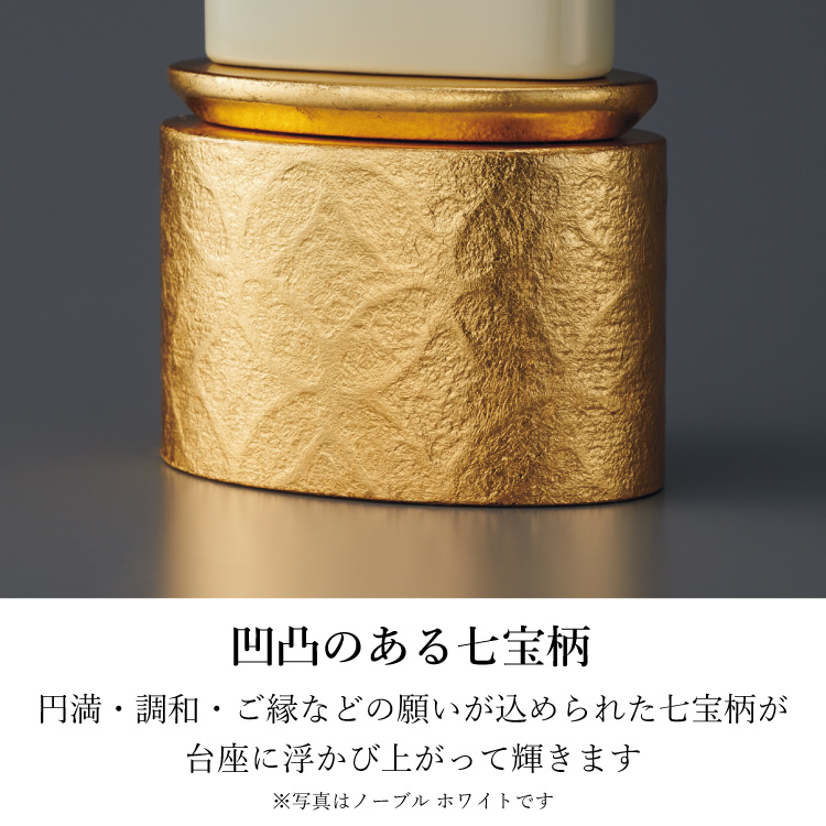 ノーブル ブラック ▼ 価格・仕様を見る 画像をクリックすると切り替わります 価格・仕様 商品名ノーブル ブラック 価格(税込)¥99,000 サイズ (mm) W(幅) :63 D(奥行き) :38 H(高さ) :167 材質ヒバ 洋箔 仕上ウレタン塗装漆仕上 製造国日本製 おしゃれなモダン位牌。金色の台座にかわいい七宝柄が浮かび上がります。夫婦位牌にできるのでミニ仏壇や小さい手元供養にも最適です。名入れを別途承ります。 文字入れもセットでご注文ください 文字入れの詳細はこちら ページの先頭へ 関連商品 ラメール 4.0寸 位牌 ¥275,000 リアン 4.5寸 位牌 ¥297,000 ミュラー・キャメル 3.5寸 過去帳・過去帳台 ¥28,600