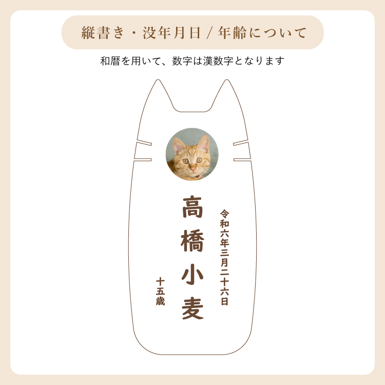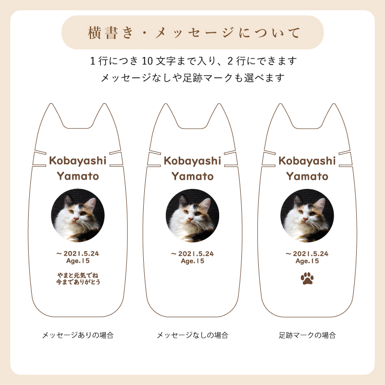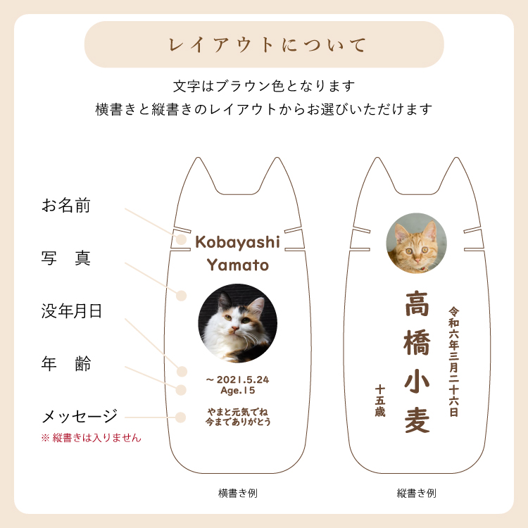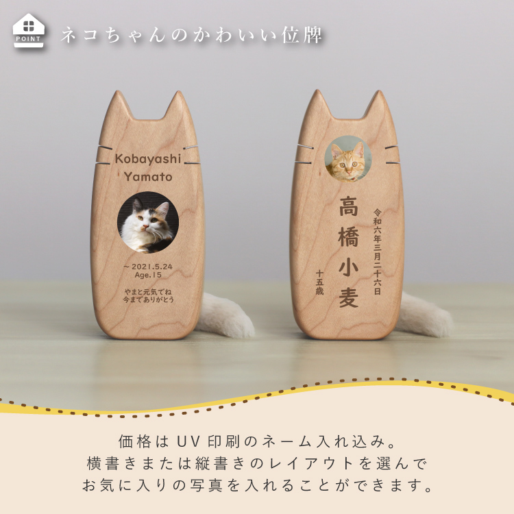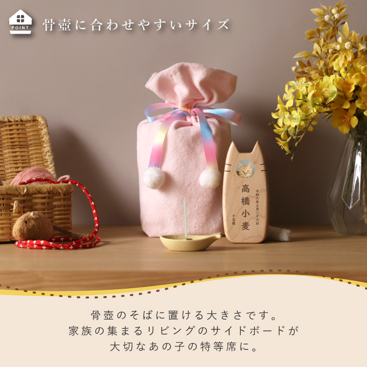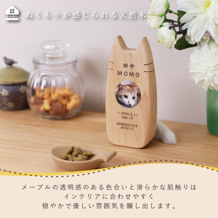 ピコ ミーチョ ▼ 価格・仕様を見る 画像をクリックすると切り替わります 価格・仕様 商品名ピコ ミーチョ 価格(税込)¥22,000 サイズ (mm) W(幅) :56 D(奥行き) :50 H(高さ) :120 材質メープル ポリエステル 仕上ウレタン塗装 製造国日本製 かわいい猫型の位牌。大切なネコちゃんのお名前や写真を入れて供養することができます。仏壇や祭壇のメモリアルグッズと置きやすいコンパクトサイズです。 ページの先頭へ 関連商品 プラート・ライト ステージ ペット供養 ¥19,800 テンポ ペット供養 ¥6,050 香皿【骨】グレー ペット供養 ¥3,300