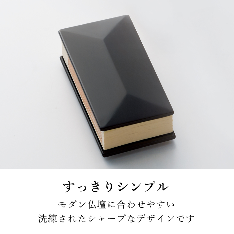 ミュラー・ブラック 3.0寸 ▼ 価格・仕様を見る 画像をクリックすると切り替わります 価格・仕様 商品名ミュラー・ブラック 3.0寸 価格(税込)¥24,750 サイズ (mm) W(幅) :45 D(奥行き) :25 H(高さ) :90 材質ヒバ MDF 仕上ウレタン塗装漆仕上 製造国日本製 モダンな過去帳です。職人の技が光る洗練されたおしゃれなデザインです。浄土真宗を始め全宗派でご使用いただけます。 ページの先頭へ 関連商品 レテ 4.0寸 位牌 ¥231,000 はなあかりピンク お盆・盆提灯・お供物・仏花 ¥34,100 いろは・レッド 3.5寸 過去帳・過去帳台 ¥24,200