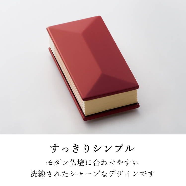 ミュラー・レッド 3.0寸 ▼ 価格・仕様を見る 画像をクリックすると切り替わります 価格・仕様 商品名ミュラー・レッド 3.0寸 価格(税込)¥24,750 サイズ (mm) W(幅) :45 D(奥行き) :25 H(高さ) :90 材質ヒバ MDF 仕上ウレタン塗装漆仕上 製造国日本製 モダンな過去帳です。職人の技が光る洗練されたおしゃれなデザインです。浄土真宗を始め全宗派でご使用いただけます。 ページの先頭へ 関連商品 ギフト箱(ちりめん飾り 6個用) お盆・盆提灯・お供物・仏花 ¥330 今庄 いまじょう 仏具・神具 ¥28,600 メモリアルフラワーmini アメシストII お盆・盆提灯・お供物・仏花 ¥1,650