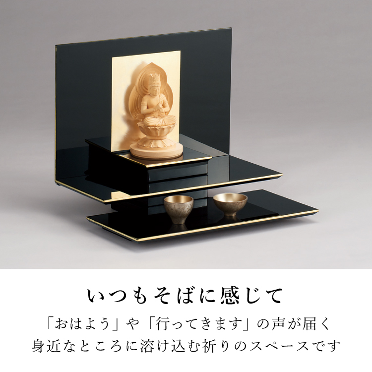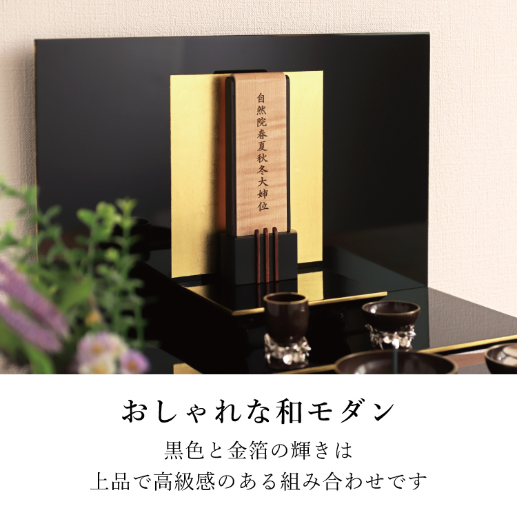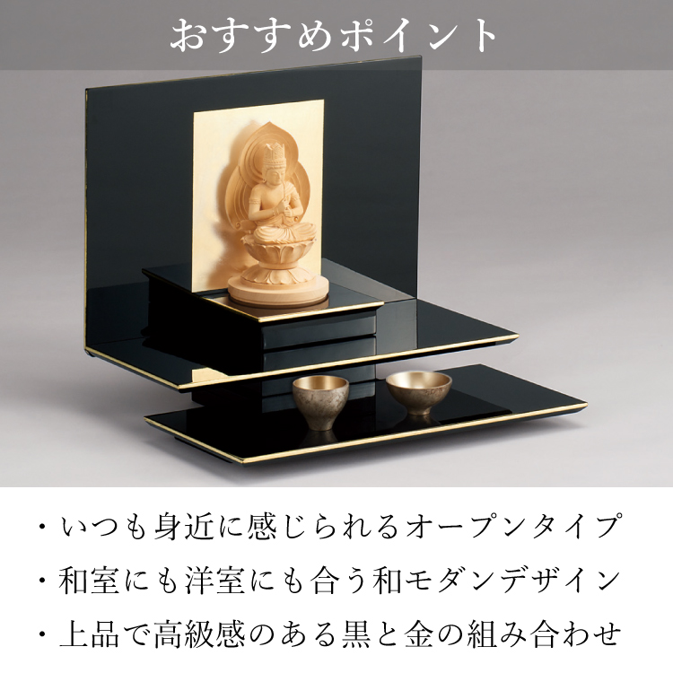 おしゃれなモダン仏壇です。リビングやマンションに置きやすいシンプルなオープンタイプなので手元供養におすすめ。日本製ならではの丁寧な作りで和モダンなインテリア空間を演出します。
