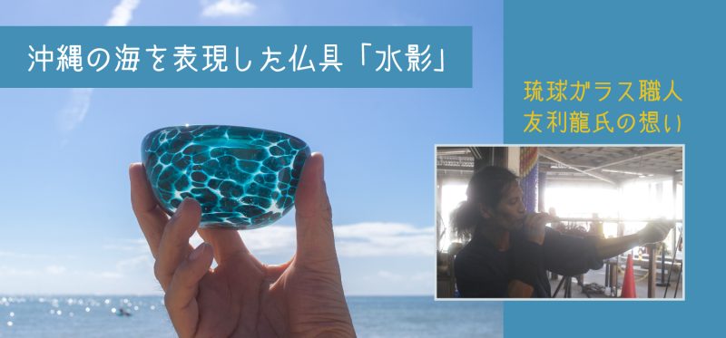水影 美ら波 ▼ 価格・仕様を見る 沖縄の美しい海と寄せる波をイメージしました。 画像をクリックすると切り替わります 価格・仕様 商品名水影 美ら波 価格(税込)¥181,500 材質ガラス 備考クリスタルビーズ ローソク立て芯付 製造国日本製 沖縄県工芸士が海をイメージして制作したモダンなガラス製仏具。種類は花立、香炉、火立、仏飯器、茶湯器の5点セット。穏やかな波の模様がおしゃれです。 ▲水影を制作する琉球ガラス村へ取材しました。生みの親である友利龍氏のインタビューも掲載。 ページの先頭へ 関連商品 エーデル ブラウン 4.0寸 位牌 ¥82,500 和紙盆栽<いちょう> お盆・盆提灯・お供物・仏花 ¥5,940 ココラン みどり 盆提灯 お盆・盆提灯・お供物・仏花 ¥16,500