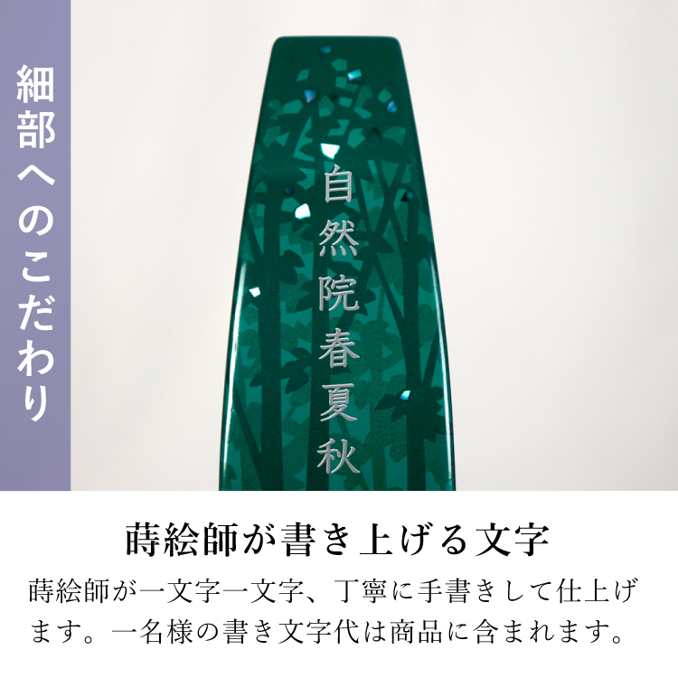 翠 みどり ▼ 価格・仕様を見る 画像をクリックすると切り替わります 価格・仕様 商品名翠 みどり 価格(税込)¥429,000 サイズ (mm) W(幅) :47 D(奥行き) :48 H(高さ) :197 材質漆 ホオ 貝 仕上輪島塗布着せ本堅地呂色仕上 蒔絵 螺鈿 製造国日本製 モダンな輪島塗位牌。蒔絵で新緑の木々ときらめく木漏れ日をおしゃれに描きました。お一人様の名入れ書き文字代込み。 ページの先頭へ 関連商品 ヴェネツィアン フォトフレーム VP-006MS 写真立て・フォトフレーム ¥25,300 ちりめんキャンドル Hasu LED お盆・盆提灯・お供物・仏花 ¥2,640 いろは・キャメル 3.5寸 過去帳・過去帳台 ¥24,200