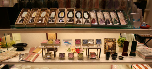 線香・ローソクや数珠などの小物も充実しており、ご進物用もご用意させていただきますので、お気軽にお申し付けください。