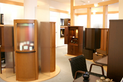 2階は、白を基調とした明るい店内で現代のライフスタイルに寄り添う仏壇を展示しています。