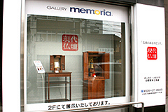 2017年にリニューアルした若林佛具製作所京都本店の2階が、ギャラリーメモリア京都駅前七条通店です。若林佛具製作所は1830年(天保元年)創業の仏壇・仏具専門店。1階は木工品やお香、リンなどの仏具をご覧いただけます。