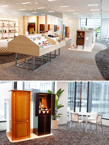 ギャラリーメモリア名古屋栄は、東海地区唯一の現代仏壇の直営店です。約300種類以上のモダンな現代仏壇・仏具を取り扱っていますので、お客様のお好みや故人のイメージに合わせて様々なデザインからお選びいただけます。