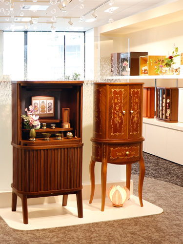 キャビネットやローボードなど、家具の上に祀るコンパクトな仏壇です。豊富なサイズ・バリエーションで、住まいに合うデザインがきっと見つかります。置き場所をとらないので、家族の集まるリビングにおすすめです。