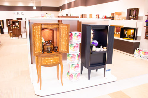 イオンモール川口前川3階のおしゃれな仏壇屋さん。モダンな仏壇仏具・位牌は勿論、線香・ローソク・念珠等小物も取り扱っています。供養、仏事関連の相談から進物のお求めまで、スタッフにお声掛けください。