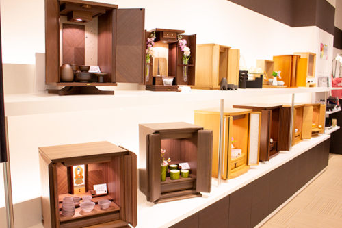 • インテリアに合うモダンな仏壇仏具を多数展示。ライフスタイルに合わせたご提案をいたします。