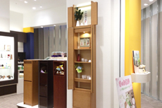 ▲ ショッピングモールならではの店構えで、ご来店いただくお客様からは、「気軽に入りやすい」とのお声を頂いております。また、明るい雰囲気で自由に見て回れるので、まるで美術館のようにモダンな仏壇・仏具をご覧いただけると思います。