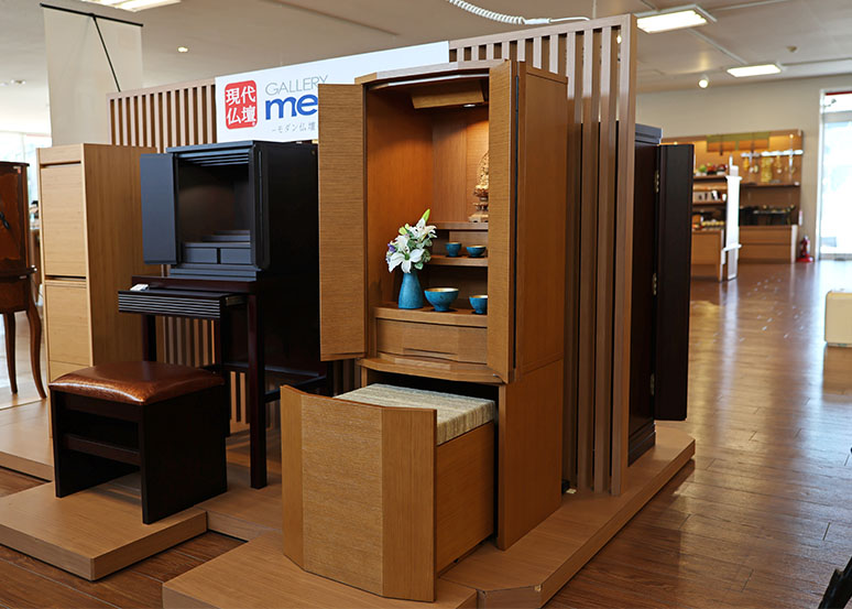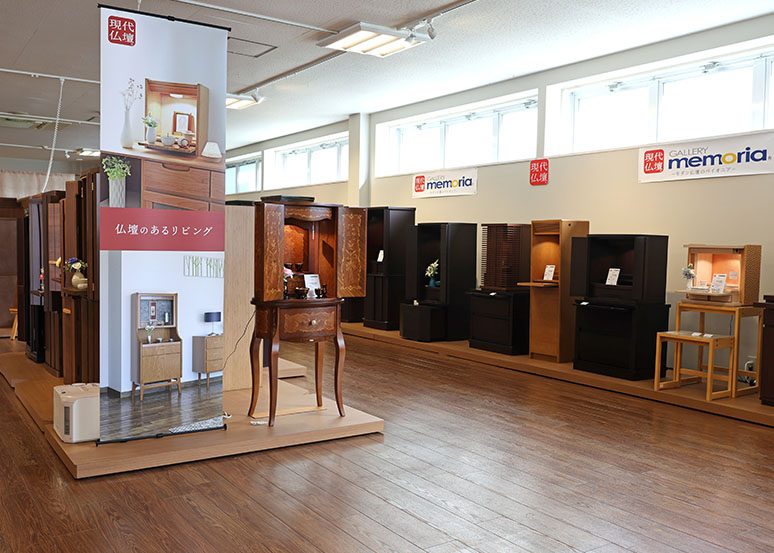 マンションのリビングに置いても場所を取らない省スペースなお仏壇を多数展示しています