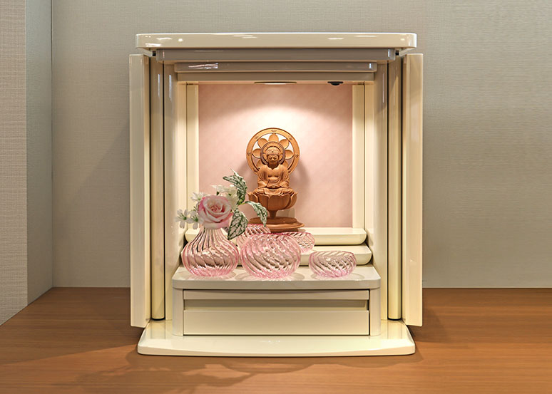 柔らかなホワイトがおしゃれなコンパクト仏壇が人気です