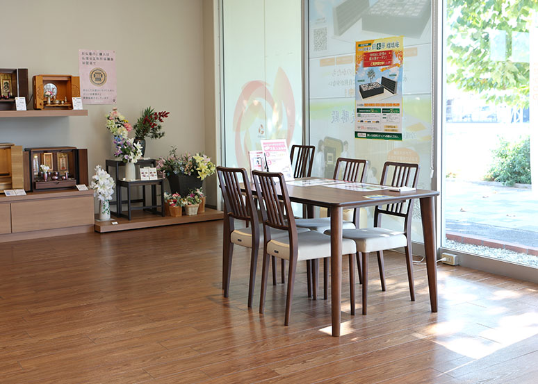 愛知県名古屋市中川区でお仏壇・ご供養の無料相談ができる店舗です。経験豊富なスタッフがお客様のお気持ちに寄り添い、モダンでコンパクトな仏壇やお位牌、四十九日法要の準備、お墓じまいまで丁寧にサポートいたします。店内には、現代の暮らしに合うモダン仏壇・仏具を展示。葬儀・墓石・終活など、供養に関わることをトータルで承っています。「こんな時はどうすれば?」「わが家らしく供養したい」などの疑問やお悩みにも、柔軟な対応力でお応えします。念珠・お線香・ローソクなどの定番の参拝用品に加え、おしゃれな手元供養品も豊富に取り揃えています。どうぞお気軽にお立ち寄りください。店舗マップ