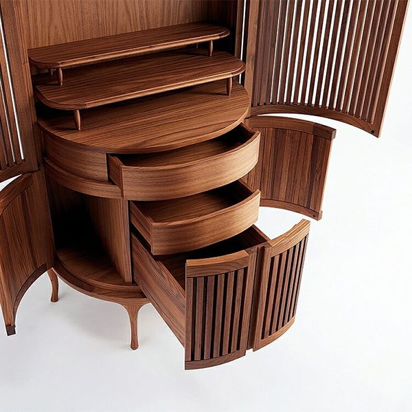 綺麗な曲面の引出しは全部で5ヵ所、充分な収納量です。