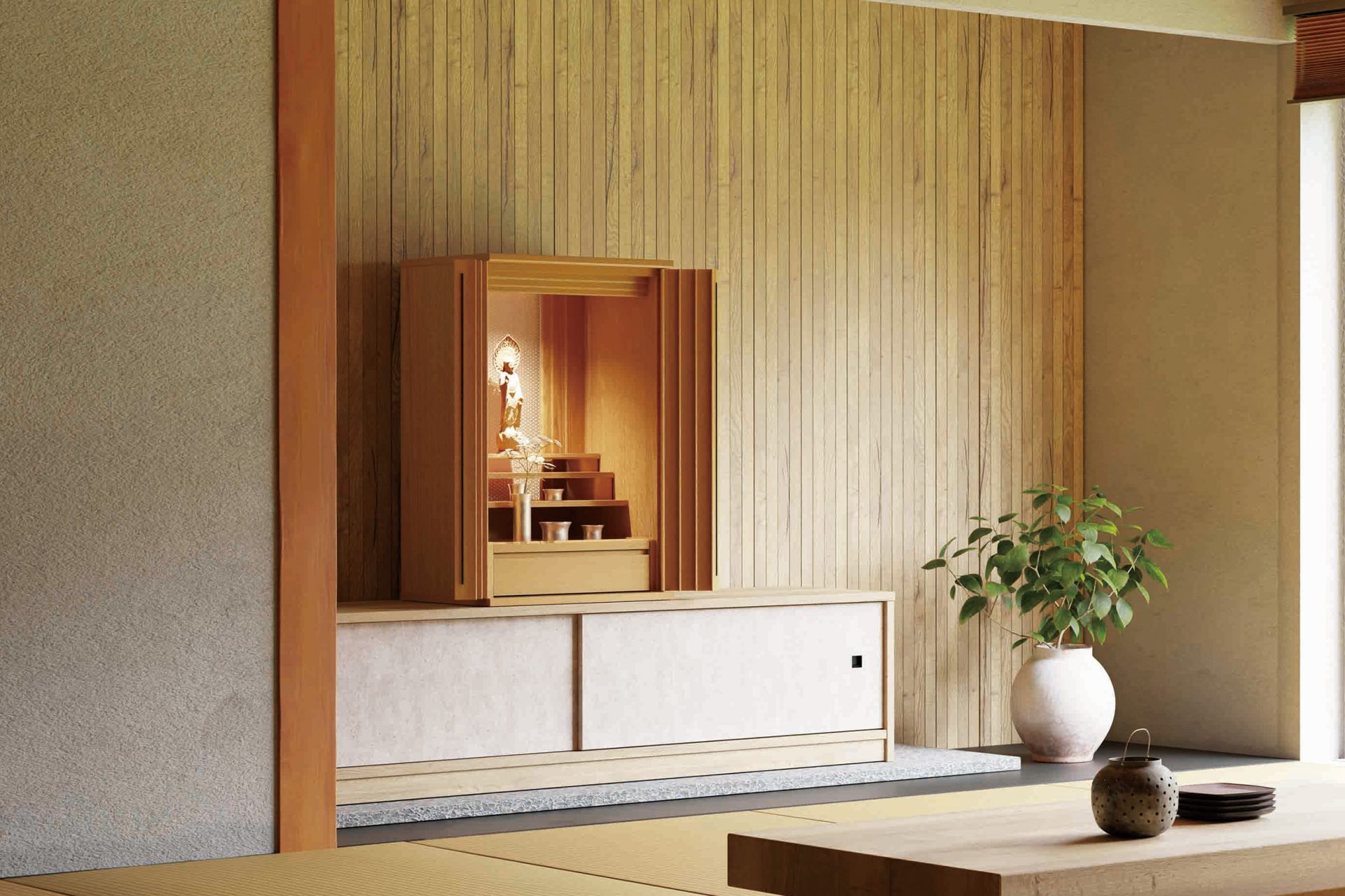 スライド式の扉を開くと華やかな金色のお祀りスペースが現れる「パッサート」