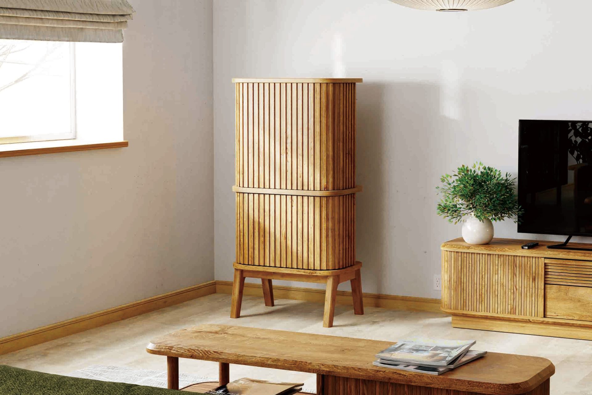 天然木の桟を組み合わせて作られた巻き戸式扉が特徴の「スフレ オーク」