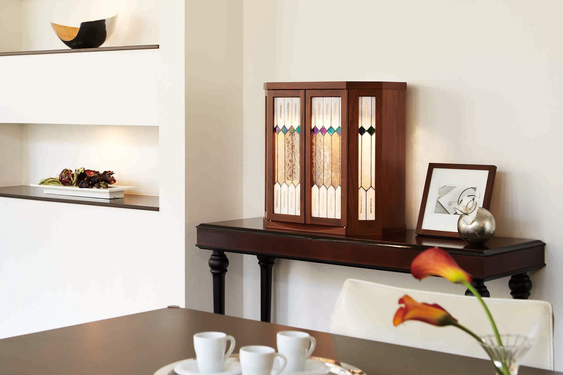 ガラスの背板や須弥壇が光を取り込みキラキラと光を纏う「オペラ」