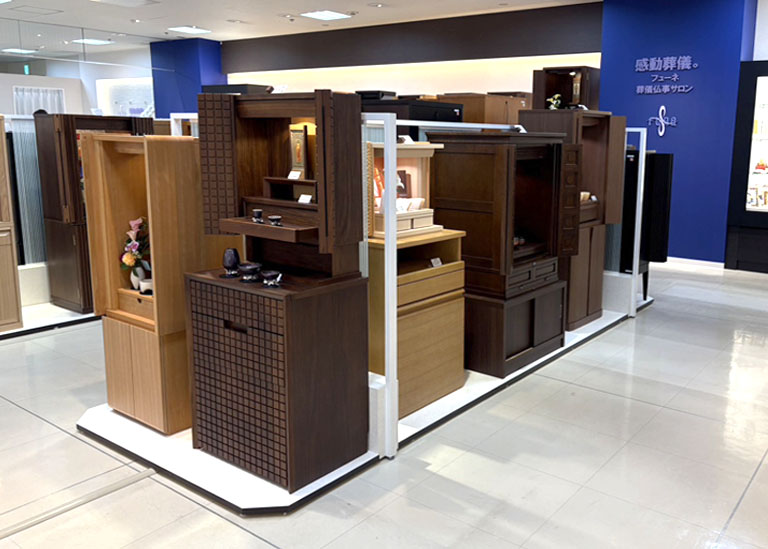 また、葬儀社のスタッフが常駐しているので仏壇だけでなく葬儀のお悩みや、就活のご相談もお任せください。
