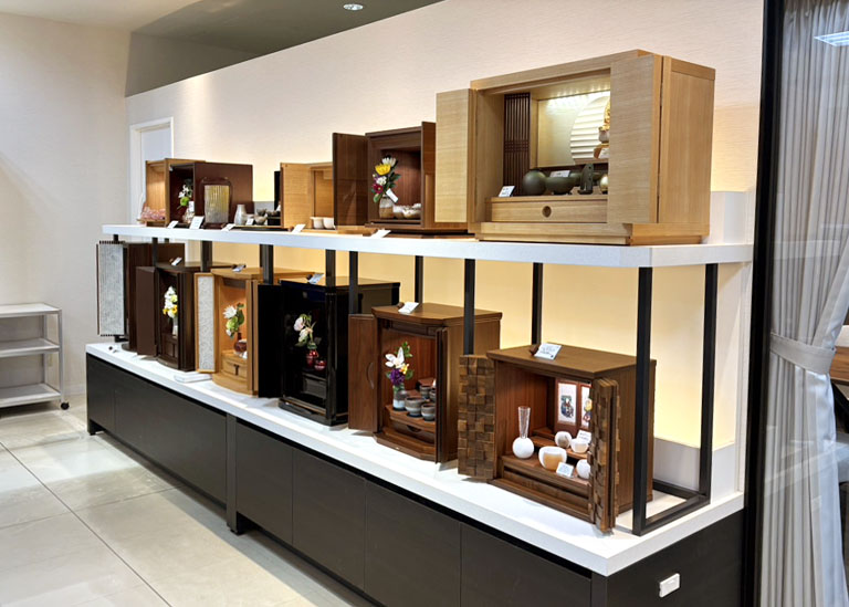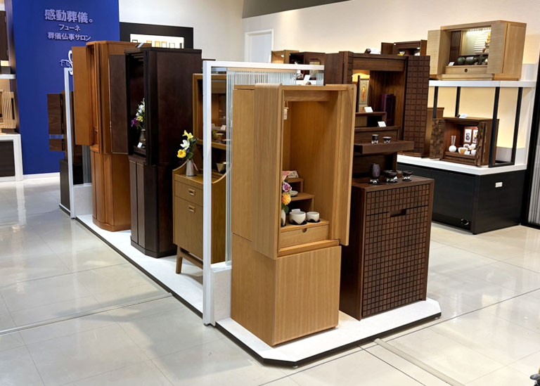 モダンでおしゃれな現代仏壇を展示しています。